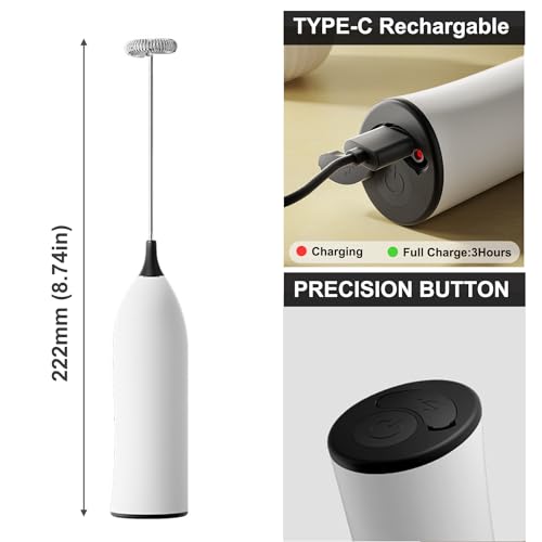 Montalatte palmare, montalatte ricaricabile tramite USB, montalatte palmare regolabile per cappuccini, cioccolata calda, frullati, mix di uova