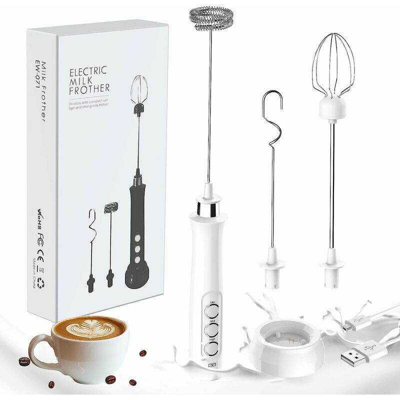Informazioni su questo articolo: Il miglior gusto del caffè: tutto ciò di cui hai bisogno è questo piccolo gadget per trasformare il latte in schiuma e aggiungerlo alla tua bevanda al caffè preferita come cappuccino, latte macchiato o macchiato.Facile ricarica USB: questo latte elettrico cappuccinatore che ha una bacchetta con una frusta all'estremità. È un'opzione molto economica e pratica allo stesso tempo, poiché puoi fornire la quantità di liquido di cui hai bisogno e montare il latte freddo e caldo. 3 tipi di fruste: offriamo 3 diverse fruste per usi diversi. Uno per montare il latte, uno per uova e burro e uno per verdure e cibi Tre impostazioni di velocità e facile da usare: 3 diversi livelli di potenza per diverse esigenze di schiumatura di latte o uova. Agitazione rapida e costante per una mano e non fa un rumore forte. Indossa e togli la frusta in acciaio inossidabile di cui hai bisogno per usi diversi.Facile da pulire con un servizio clienti cordiale: le fruste sono