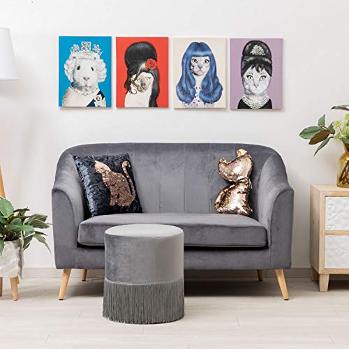 Montemaggi Pouf Poggiapiedi in velluto con frange cilindrica glam Grigio 38x38x43cm