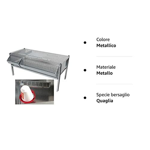 Montidistribuzione Gabbia Sovrapponibile in Rete Zincata per Quaglie Ingrasso (40-50 Capi). Max Ingombro cm 46 x 100 x H 50. in Omaggio Abbeveratoio e Mangiatoia Supplementari