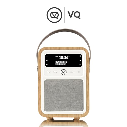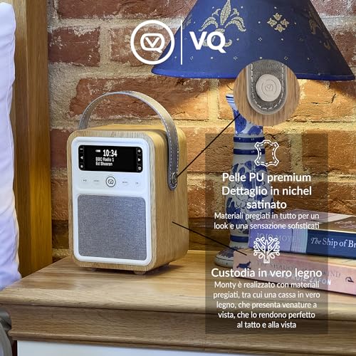 VQ Monty Radio DAB Plus/DAB con Cassa Bluetooth, FM e Radio Sveglia Funzione - Alimentata da Rete e Batteria Radio Portatile Vintage con Antenna, Presa Cuffie e Porta USB - Quercia