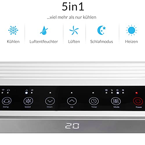 4in1 MULTIFUNZIONALE: il condizionatore d'aria ha 4 impostazioni, raffreddamento dell'aria, deumidificatore, ventilatore e una modalità sleep. Mentre è in funzione, l'illuminazione viene spenta, in modo da poter dormire indisturbati. Inoltre, grazie al timer di 24 ore, è possibile determinare autonomamente il tempo di funzionamento dell'unità mentre si dorme.