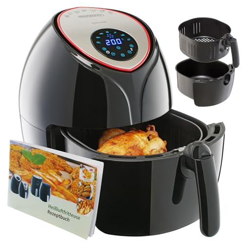 Monzana Friggitrice ad Aria Calda 9in1 XXL 6,5L LED Touch Display Senza Olio Antiaderente Air Fryer 1850W Nera