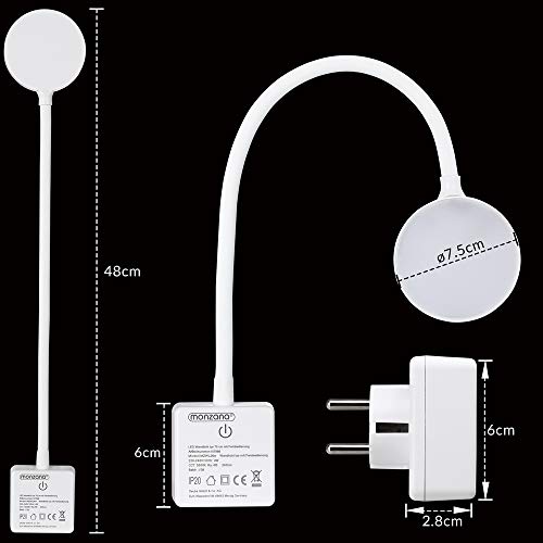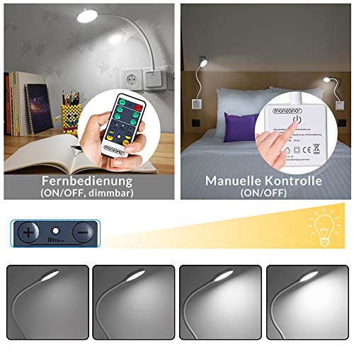 Monzana LED Lampada da Lettura a Muro con Telecomando da Comodino con Braccio Regolabile