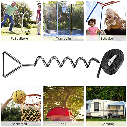 VERSATILE: il set da 4 picchetti da terra MONZANA 4 non solo offre una protezione ottimale per il vostro trampolino, ma può anche essere utilizzato come ancoraggio a terra per la tenda da campeggio, l'altalena, gli scivoli, i sistemi di canestri da basket o altre attrezzature da esterno.