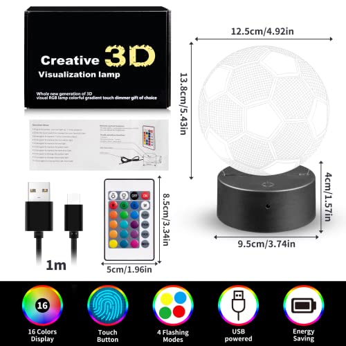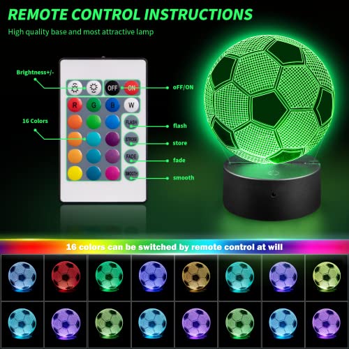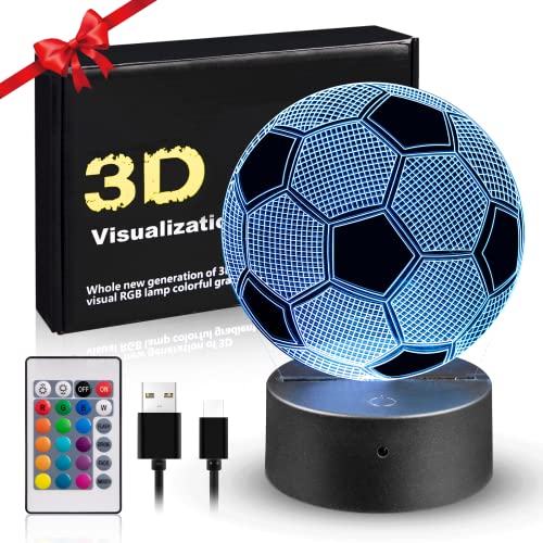 Moocuca 3D Luce Notturna per Bambini Regalo de Calcio per Ragazzo Ragazza Telecomando Comandi 16 varianti di colore Decorazione per il comodino Ambiente creativo