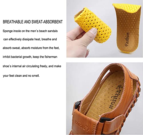 Moodeng Sandali Uomo Estivi Sportivi Pelle Trekking Scarpe da Spiaggia per All'aperto Escursionismo Traspirante (Giallo, numeric_44)