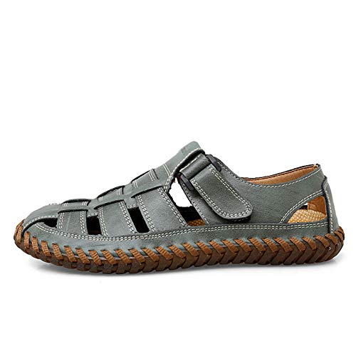 ALTA QUALITÀ: la tomaia del sandalo casual a punta chiusa è realizzata in pelle di alta qualità con una trama chiara. E i sandali in pelle hanno utilizzato cuciture a mano in modo che le scarpe da pescatore possano essere resistenti e solide.