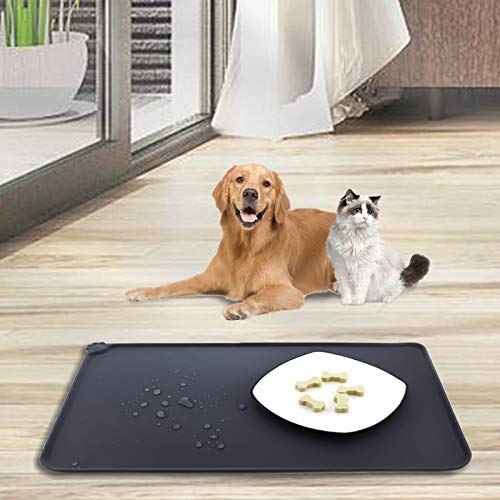 MOOING Tappetini Sottociotola per Cani/Gatti, Tappetino Silicone per Ciotola di Cibo Antiscivolo per Animali per Proteggere Il Pavimento da Liquidi, 47 x 30 cm,2 pz,(Grigio+Nero