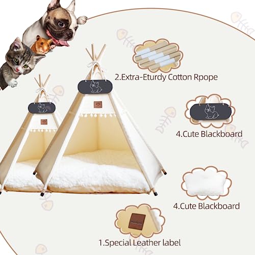 Mooipet Tenda Per Animali Con Cuscino Teepee Tenda Per Cani e Gatti con Cuscino Portatile Pet Teepee Tipi con Lavagna Tenda Rimovibile e Lavabile 50x50x60cm