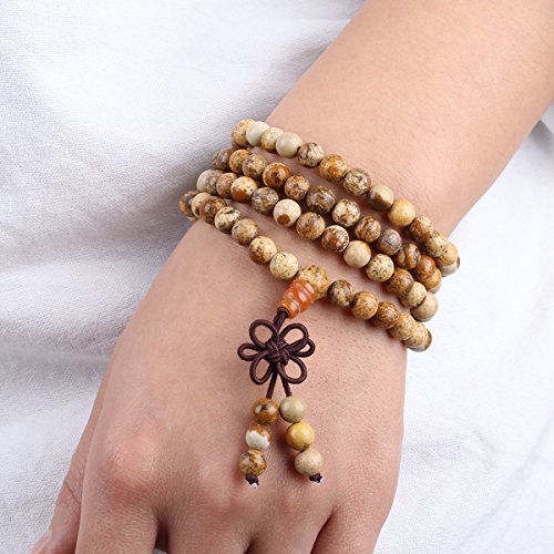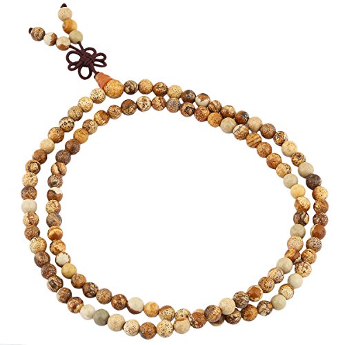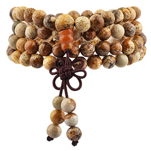 Mookaitedecor - Bracciale elastico con 108 perle, collana tibetana buddista per la preghiera, collana di Buddha Mala per cristalli, Reiki, Chakra e guarigione, Pietra, cristallo