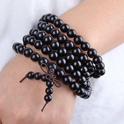 Mookaitedecor Braccialetto elastico in legno con 108 perle, collana da preghiera tibetana buddista, per yoga e meditazione, 86 cm, Legno
