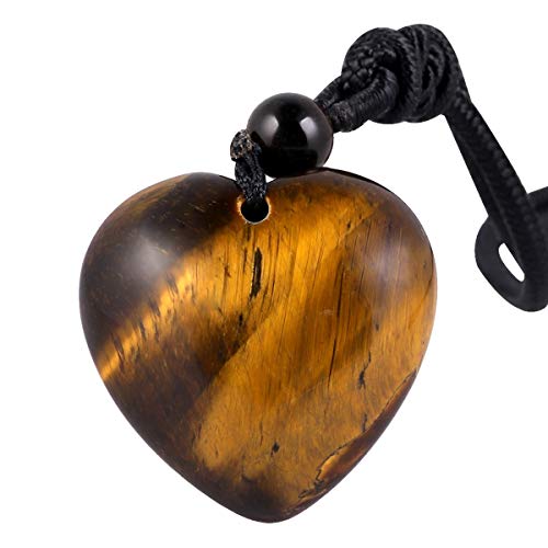 Mookaitedecor - Collana con ciondolo a forma di cuore, con pietra per litoterapia, protezione in cristallo, con cordino regolabile, colore: giallo, cod. PLAYNUM0008701