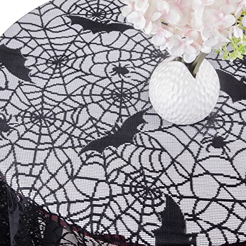 Mookaitedeocr 69 pollici, tovaglia rotonda in pizzo di poliestere, motivo a ragnatela, per cena, Halloween, feste gotiche