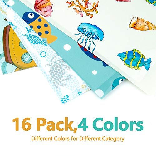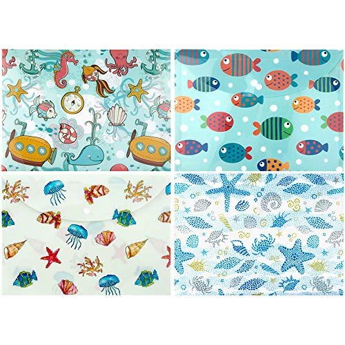 MOOKLIN ROAM Cartelline portadocumenti in A4, 16 pezzi Animali dell'Oceano sacchetto di documenti portatile con apertura a busta e bottone per uffici cosmetici accessori da viaggio