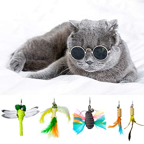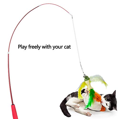 Questi divertenti set di giocattoli interattivi per gatti includono 5 pezzi di ricambio per teaser in piume naturali e bacchetta interattiva per gatti