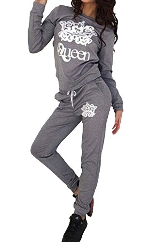 Moollyfox Donna Casual Maglione Tuta Collo Rotondo Stampa Felpa Pullover + Pantaloni 2 Pezzi Grigio Scuro M