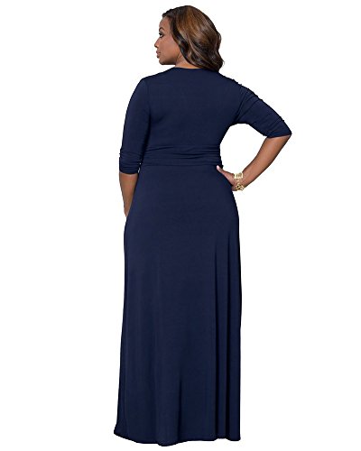 Moollyfox Donne Grandi Iarde Solido Colore V Scollo Lungo Vestito Blu XXXL