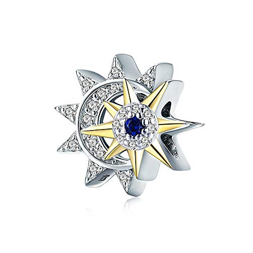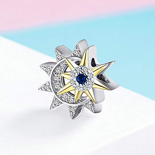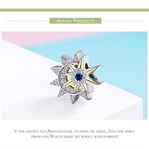 Sun Moon - Ciondolo in vero argento Sterling 925, con ciondolo a forma di sole e luna, con zirconia cubica luminosa, adatto per braccialetti da donna