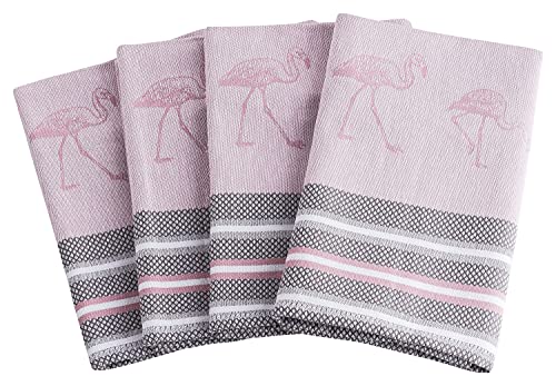 Moon Confezione da 4 strofinacci, strofinacci da cucina circa 50x70 cm in 100% cotone con motivo fenicotteri (rosa)