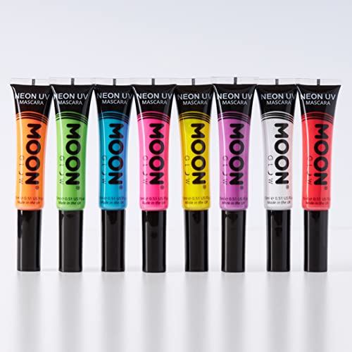 MOON GLOW INTENSE NEON UV MASCARA - Mascara neon straordinariamente luminoso con il divertimento aggiunto della magia fluorescente. Tutti gli 8 colori super intensi brillano di luce neon di giorno e donano alle tue ciglia uno splendore straordinario sotto l'illuminazione UV e le luci nere: fantastico!