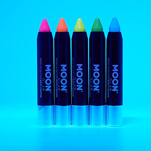 Moon Glow Neon UV Glitter Face Paint Stick/Body Crayon trucco per viso e corpo - Si illumina brillantemente sotto l'illuminazione UV, 5 pezzi (confezione da 1)
