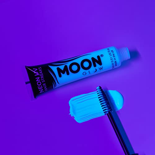 SUPER FACILE DA USARE - Le mèches per capelli UV al neon intense Moon Glow rendono facile la creazione di effetti unici. Usa l'applicatore con bacchetta mascara per capelli e spazzola per aggiungere sottili linee di colore o onde pazzesche per un effetto wow, giorno e notte. Per rimuoverlo, lavare i capelli con lo shampoo normalmente.