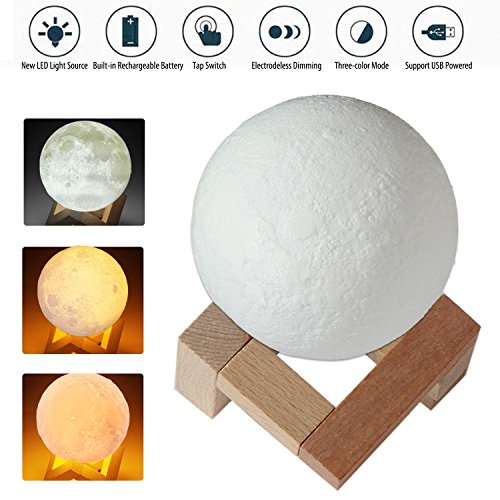 Moon Lampada, Umiwe Luce Notturna della Luna Lampada Ricaricabile LED di Stampa 3D Lampada Romantica della Lampada della Lampada da Tavolo Lunga con Luce Calda e Luce Bianca (15cm-Touch)