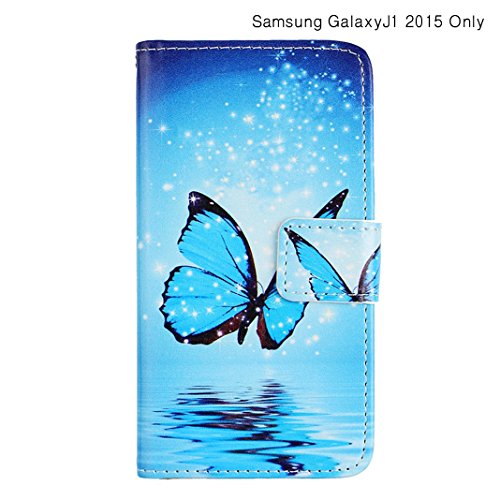 Moon mood Cover Galaxy J1 2015 Portafoglio, Custodia per Samsung Galaxy J1, PU Pelle Libro Flip Cover per Samsung Galaxy J1 2015 J100H Custodia Protettiva Blu Leather Wallet