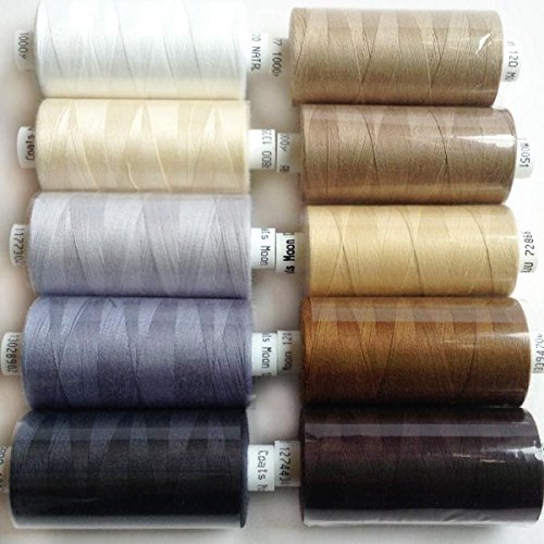 Moon - 10 rocchetti di filo da cucito in poliestere, lunghezza: 1000 m, 120 strati Brown