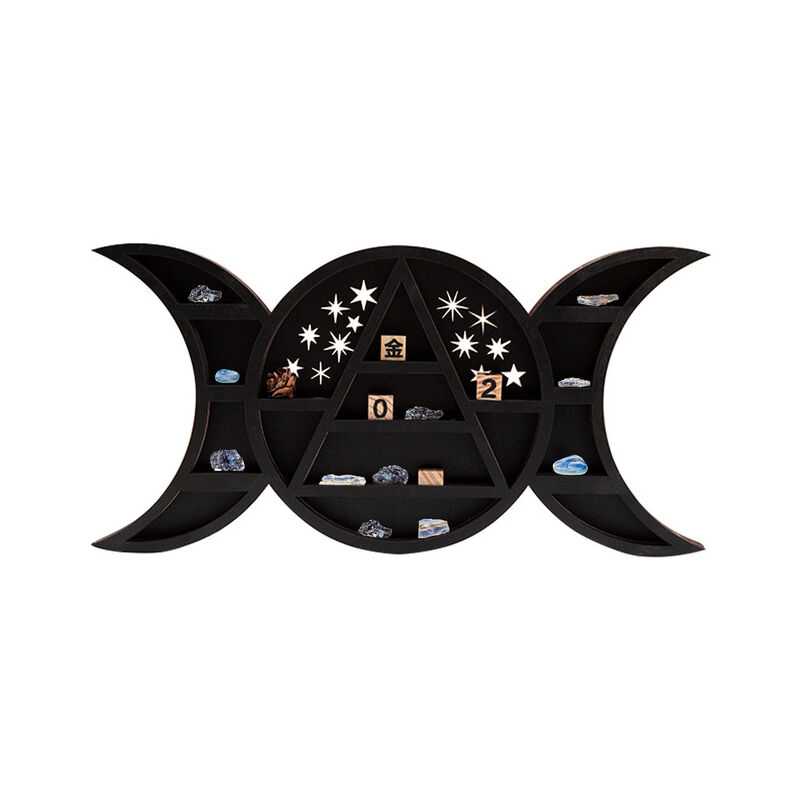 Moon Shelf Crystal Shelf Display espositore in cristallo per pietre oli essenziali e che Decor Gothic wprurighic Decor Moon Phase Caratteristica: 1. Il espositore in cristallo di legno può essere utilizzato per aggiungere spazio di archiviazione extra per soddisfare le diverse esigenze di archiviazione e posizionamento. Gli scaffali di cristallo rendono i piccoli spazi più grandi!2. Il Display in cristallo utilizza un'elegante combinazione di disegni rotondi e con fasi lunari per fornire una sensazione calda e rustica in qualsiasi spazio.3. The Crescents Moon Shelf non è solo uno scaffale, è anche un lavoro artistico! Il Rack di stoccaggio in cristallo di legno è il modo perfetto per aggiungere un tocco di bellezza e magia in qualsiasi spazio e rendere il tuo aspetto domestico allettante.Caratteristica:1. Questo supporto di cristallo verticale offre infinite possibilità di utilizzo ed è una idea per visualizzare la tua collezione di cristalli, rocce, oli essenziali, piccole opere