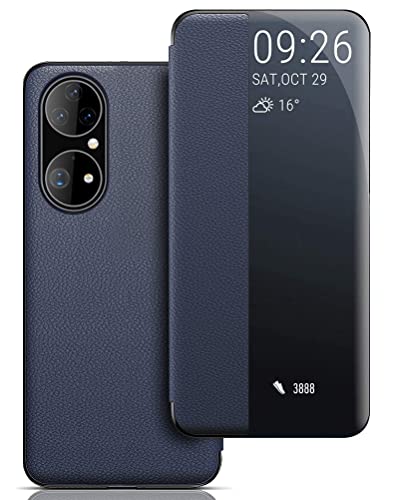MOONCASE Cover per Huawei P50 Pro Custodia, View Window Smart Cover Ultra Sottile Huawei P50 Pro Flip Case Auto Svegliati/Sonno Protettiva Custodia per Huawei P50 Pro - Blu
