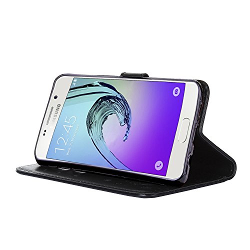 MOONCASE Galaxy A3 (2016) Custodia in Pelle Protettiva Flip Cover per Samsung Galaxy A3 (2016) A310 Fiore Snap-on Magnetico Bookstyle TPU Case Nero