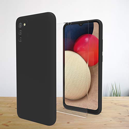 MOONESS Cover per Samsung Galaxy A02s Custodia,con 2 Pellicola Vetro Temperato Morbida Sottile Liquid TPU Case per Samsung Galaxy A02s - Nero