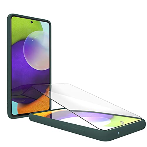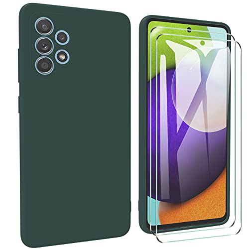 MOONESS Cover per Samsung Galaxy A52 / A52s Custodia,Con 2 Pellicola Vetro Temperato Morbida Sottile Liquid TPU Case per Samsung Galaxy A52s / A52 - Verde scuro