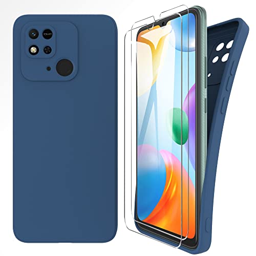 MOONESS Cover per Xiaomi Redmi 10A Custodia,Con 2 Pellicola Vetro Temperato Morbida Sottile Liquid TPU Case per Xiaomi Redmi 10A / Redmi 9C - Blu