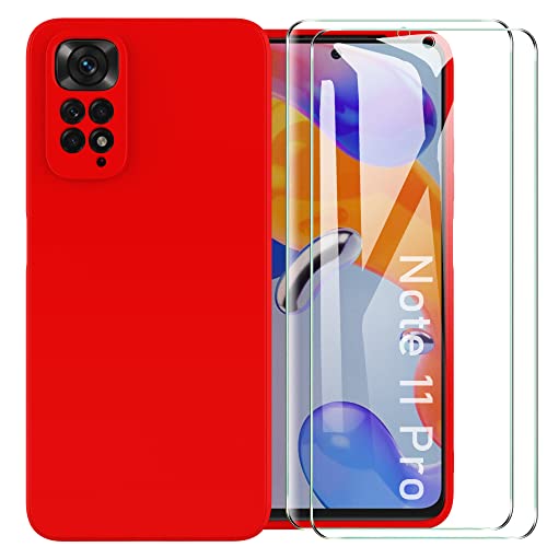 MOONESS Cover per Xiaomi Redmi Note 11 Pro Custodia,Con 2 Pellicola Vetro Temperato Morbida Sottile Liquid TPU Case per Xiaomi Redmi Note 11 Pro - Rosso