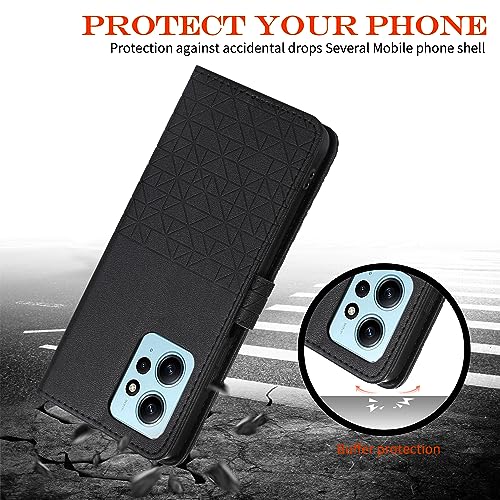 MOONESS Cover per Xiaomi Redmi Note 12 4G 6,67 Pollici con Vetro temperato,Custodia a Libro in Pelle Flip Portafoglio Case per Xiaomi Redmi Note 12 4G - Nero