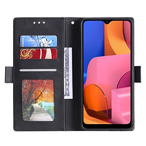 MOONESS Custodia per Samsung Galaxy A20s Pelle + Vetro temperato,Flip Premium Protettiva Portafoglio Case Cover per Samsung Galaxy A20s(P-Nero)