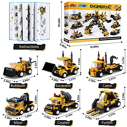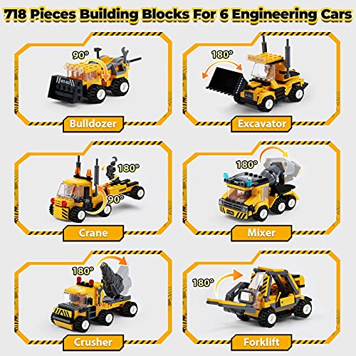 MOONTOY STEM Auto Giocattoli da Costruzioni, 6 in 1 Robot Giocattolo Mattoncini Costruzioni 718 Pezzi Escavatore Gru Giocattolo Kit di Blocchi Giochi Educativi Regalo Bambina Maschio 6 7 8 9 10+ Anni