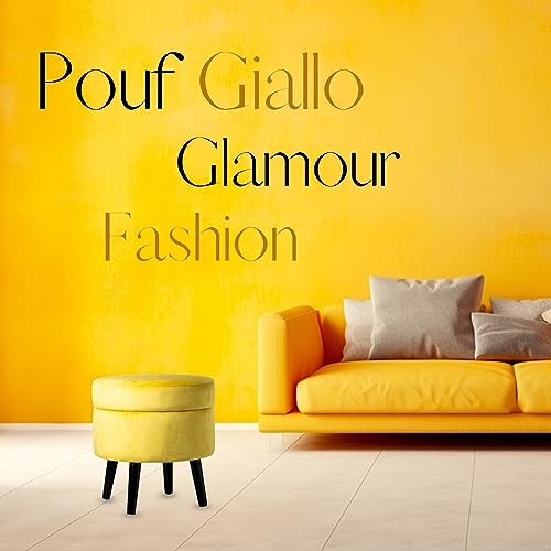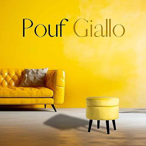 Moorg Pouf Contenitore in Velluto Color Giallo, Puffo Contenitore Rotondo, Pouf Contenitore con Piedini in Legno, Pouffe Salotto 41 x 38 cm