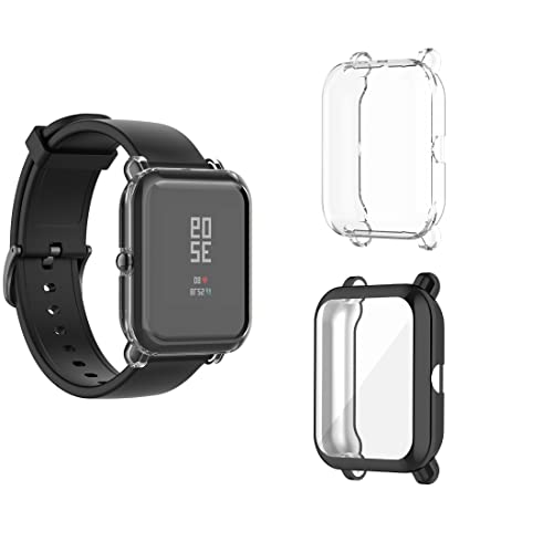 Moorovgi Cover Compatibile con Amazfit Bip,Custodia Protettiva in TPU Anti-graffio per Amazfit Bip U/Amazfit Bip 1S/Amazfit Bip/Amazfit Bip Lite (transparent&Nero)