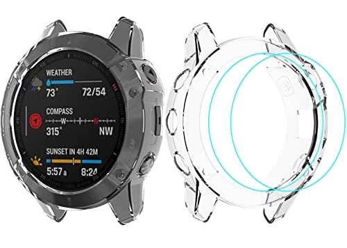 Moorovgi Custodia+2 Pezzi Proteggi Schermo Compatibile Fenix 6, [Edge Cover] Custodia protettiva antiurto in TPU morbido con pellicola protettiva (Transparent)