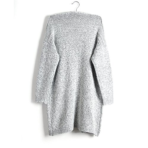 Moorui Donne Maglione Cardigan Lungo Maglia Cappotto Anteriore Aperto con Tasca Grigio L