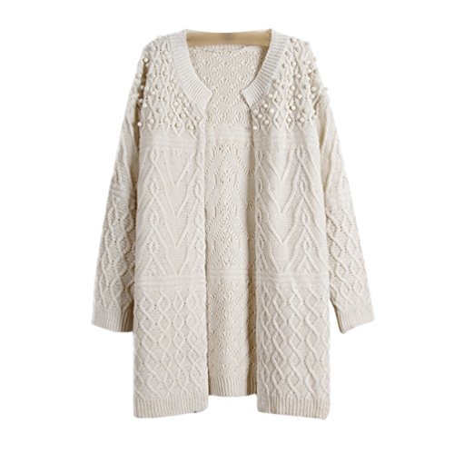 Moorui Donne Maglione Perla Cardigan Lungo Maglia Cappotto Anteriore Aperto Beige