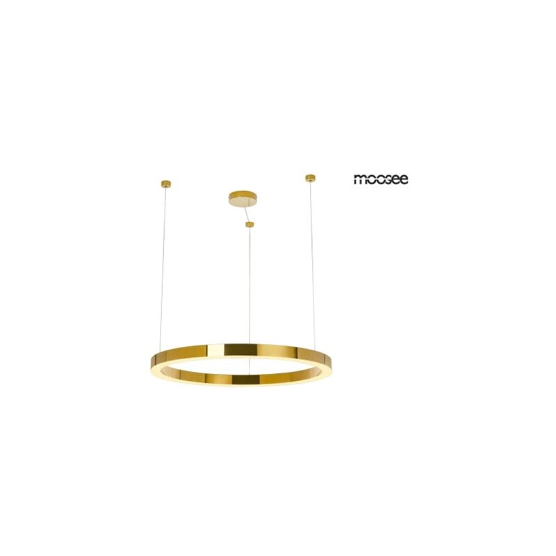 Lampada a sospensione Ring Luxury 90 in acciaio cromato-oro. La copertura del paralume è in plastica lattiginosa. La forma rotonda e la sorgente luminosa a LED garantiscono un'illuminazione ottimale della stanza. La lampada è venduta con sorgente luminosa. La collezione di lampade Ring comprende varie dimensioni e varianti colore. Luce: LED 60 W / 4800 lm / 3000 K (modificabile a 4000 K a pagamento) Apparecchio: altezza 300 cm / larghezza 90 cm / profondità 90 cm Paralume: dia. 90 cm / altezza 6 cm Installazione: installazione a soffitto Peso netto: 8 kg Dimensioni imballo: 97 cm / 97 cm / 13 cm.