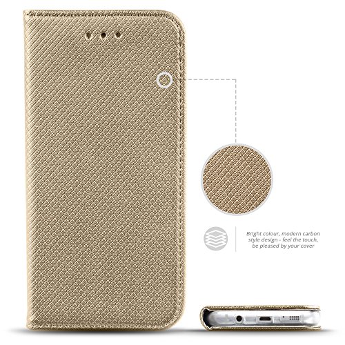 Moozy Cover Custodia a Libro per Samsung S6 Edge, Oro - Flip Smart Magnetica con Funzione di Appoggio