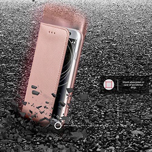 Moozy Cover Custodia a Libro per Sony Xperia XA2, Oro Rosa - Flip Smart Magnetica con Funzione di Appoggio