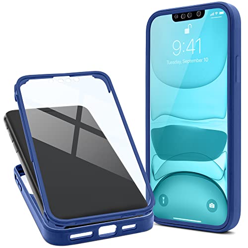 Moozy Cover 360 Gradi per iPhone 13 Pro Max - Trasparente con Bordo Blu, Protezione a Tutto Tondo Anteriore e Posteriore, Custodia per Cellulare con Vetro Temperato Integrato