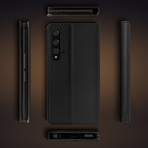 Moozy Cover per Huawei Nova 5T e Honor 20, Nero - Custodia a Libro Flip Smart Magnetica con Appoggio e Porta Carte
